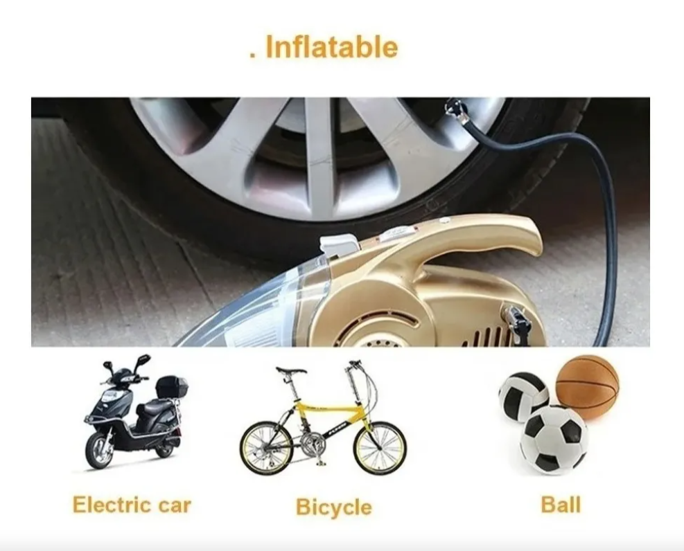 Una herramienta compacta y poderosa que combina aspiradora + bomba de aire (compresor) + soplador + luz, diseñada para cubrir múltiples necesidades del día a día, desde limpiar a fondo el interior del vehículo hasta inflar llantas, balones o inflables en cualquier lugar.