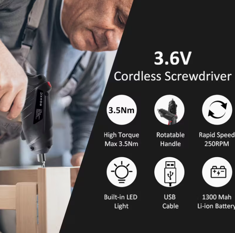 Haz tus trabajos de armado, reparación y mantenimiento mucho más rápidos y sencillos con el destornillador eléctrico recargable, la herramienta perfecta para el hogar, la oficina o proyectos DIY. Diseñado para ofrecer potencia constante, control total y máxima comodidad, incluso en espacios reducidos.